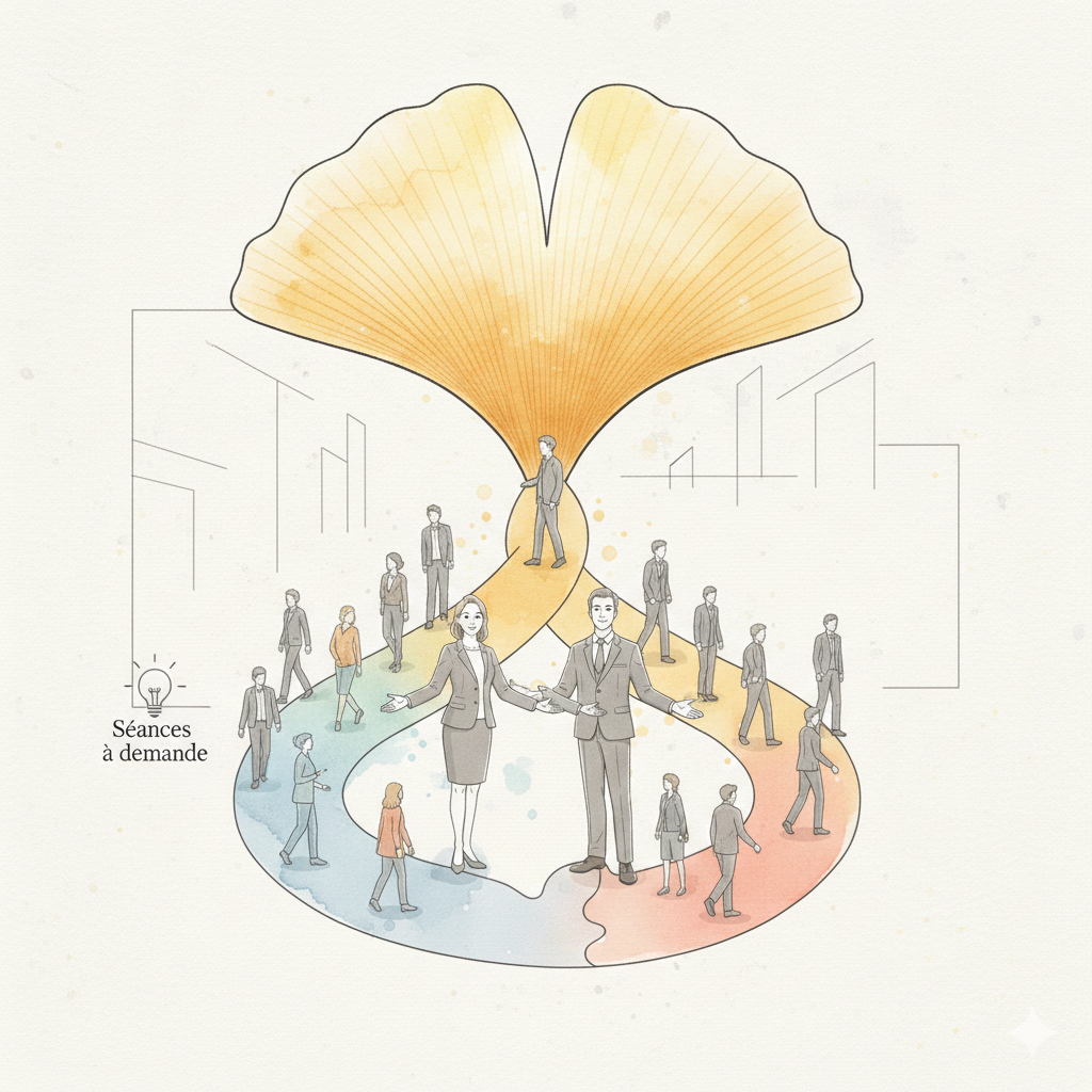 Nous construisons avec vous les parcours adaptés à vos besoins : Sensibilisation, séances à la demande, appuis dirigeants et équipes projets, suivis et évaluations post-accompagnement Salariés et Managers.